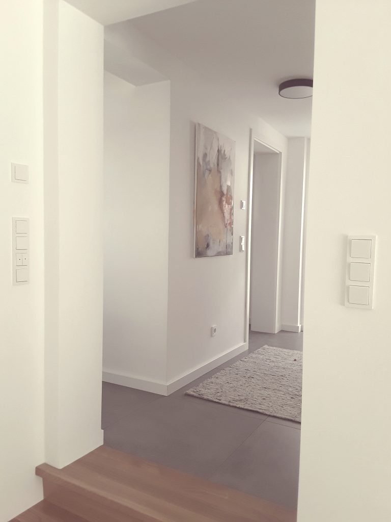 Sie zeigen sich gewünscht farbharmonisch, wollen aber in den weichen Linien und dem eher zarten Farbauftrag ein Kontrast zur gradlinigen Innenarchitektur sein.